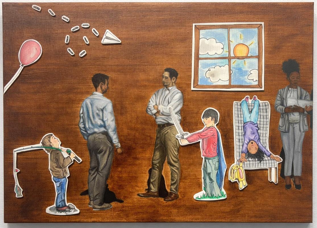 One of two winning Juror's Choice Awards is "Let Me Out," 2025, mixed media on canvas